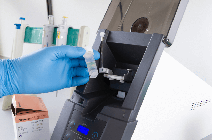 6. Place it in the MiniLys Homogenizer and secure it with the rod